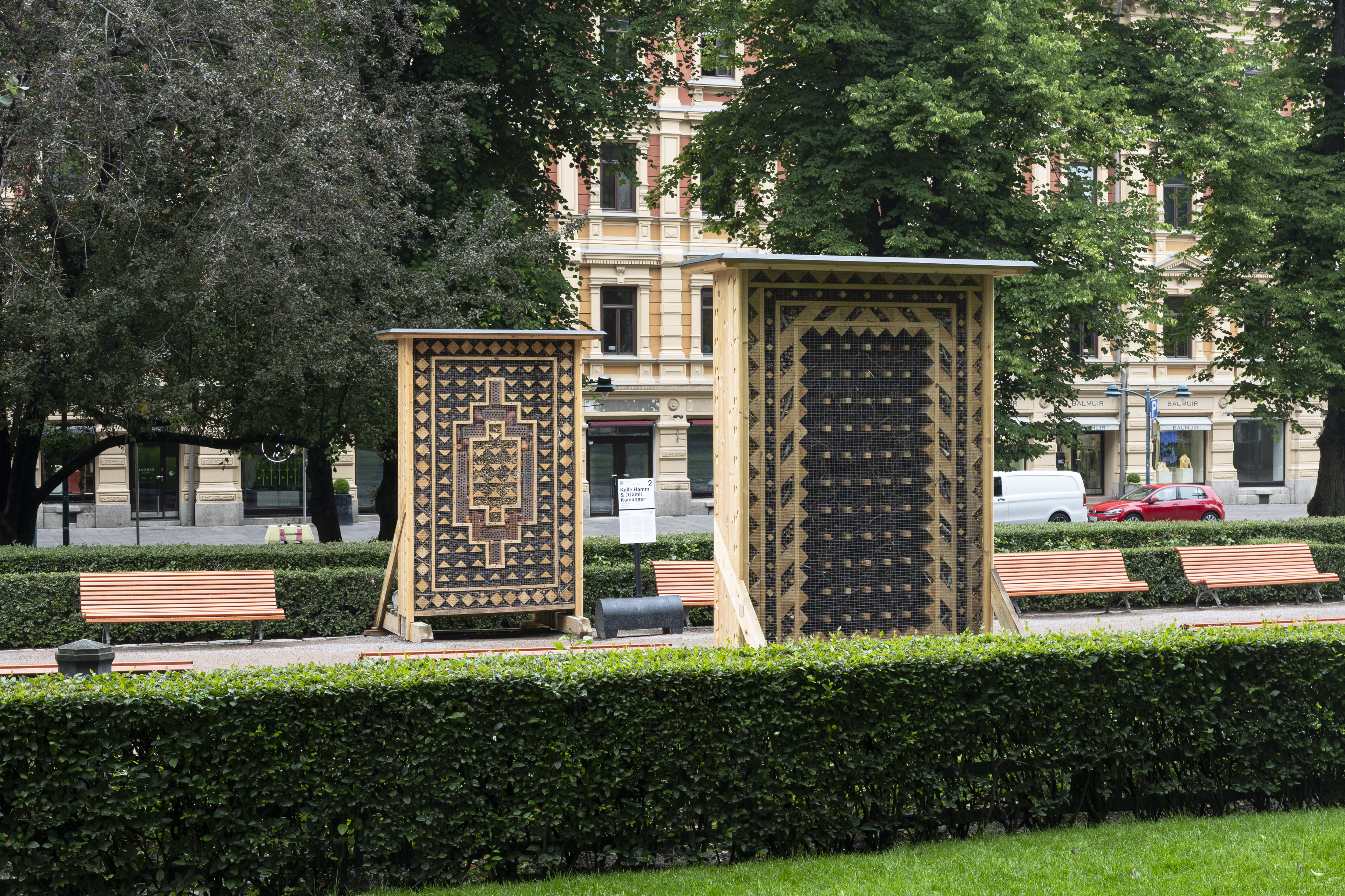 Hammin ja Kamangerin teoksessa julkinen ja yksityinen limittyvät, kun perinteisesti kodin yksityiseen vaikutuspiiriin liitetyn ja symboleiltaan kotiasuojelevan tekstiilin sisään muuttaa kaupunkilaisia, joiden elintila kapenee jatkuvasti. Teos tarkastelee julkista tilaa siten myös enemmän-kuin-inhimillisten poliittisten toimijoiden – kuten hyönteisten – asuttamana, lajienvälisiä protokollia[12] ja toimintatapoja kipeästi tarvitsevana kontekstina. Ekologisen kriisin aikana julkista tilaa on kokonaisuudessaan tarkasteltava sen itsensä ehdoilla: sovitettava inhimillinen toiminta myös olemassa olevaan[13], eikä aina jahdata ja rakentaa uutta. Tähän kuvitteluun ja asemointiin on myös julkisen taiteen osallistuttava.